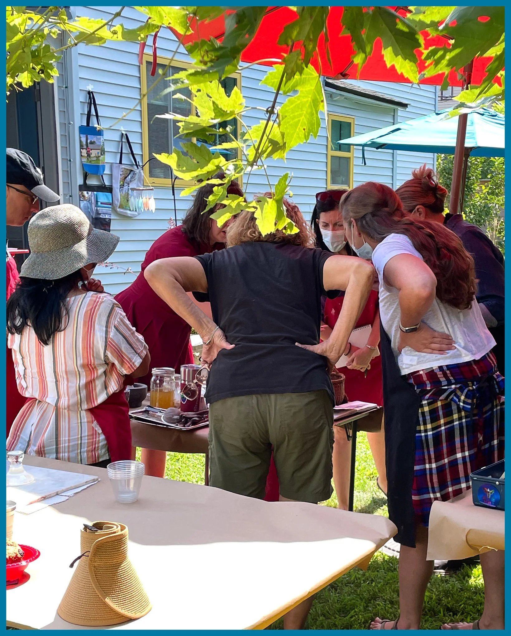 Please wear comfortable shoes for the event, and be mindful you will be outdoors for our offerings: while we encourage you to bring your own insect repellant, please be respectful of others with allergic sensitivities to smells/toxins. We’ll have green/sensitive aromatic tiki torches lit around the space.